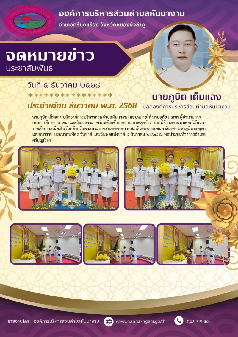 องค์การบริหารส่วนตำบลหันนางาม อำเภอศรีบุญเรือง จังหวัดหนองบัวลำภู : www.hanna-ngam.go.th
